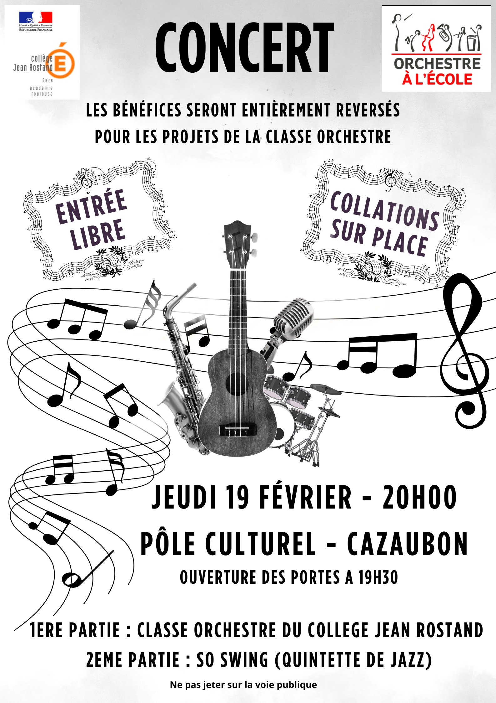 Les bénéfices de cette soirée seront entièrement reversés aux projets de la classe orchestre, afin de soutenir la pratique musicale des élèves et de favoriser l’accès à la culture pour tous.